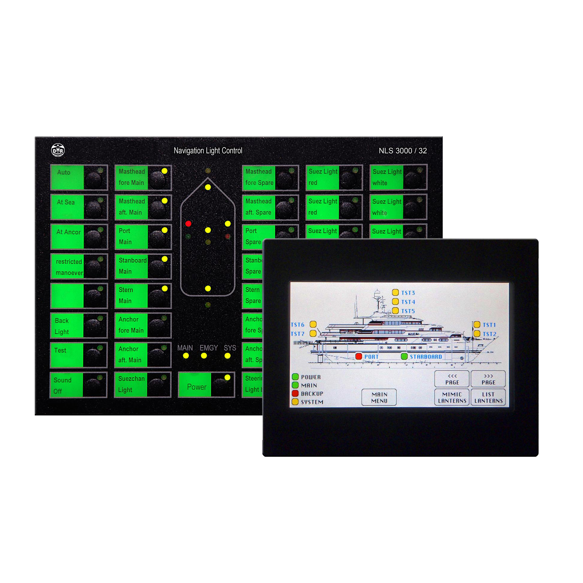 NLS 3000 is an easy to use navigation lantern control and monitoring system, with up to 48 channels which is type approved by German Lloyd (GL). It can alternatively be operated with power supplies 24VDC, 115VAC or 230VAC. Function keys allow standard settings such as "at sea" , "at anchor" , "ram" or "reversal of heading" to be activated by a single button or even automatically by an external contact.