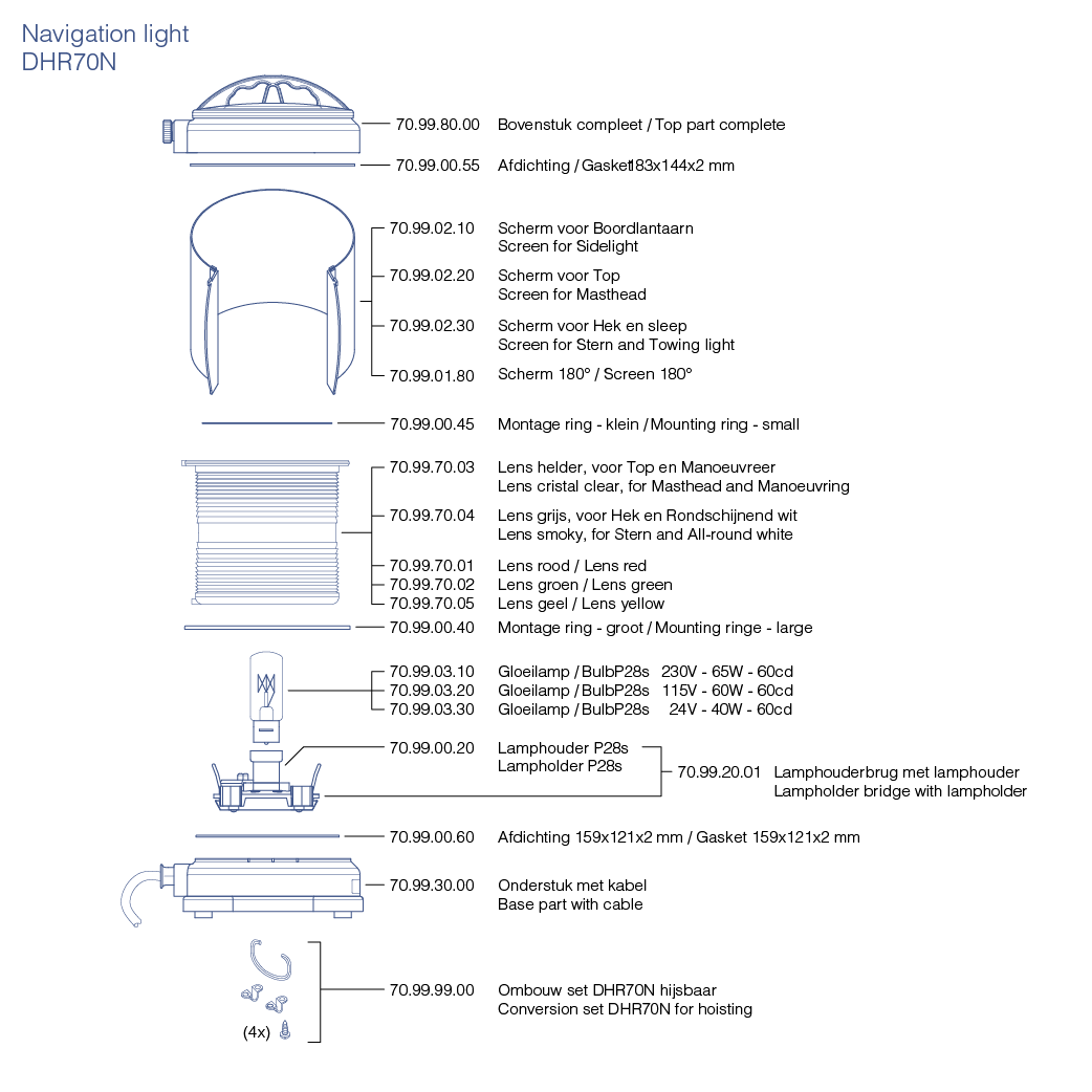Sector lights and 180° screened lights: 2.6kg