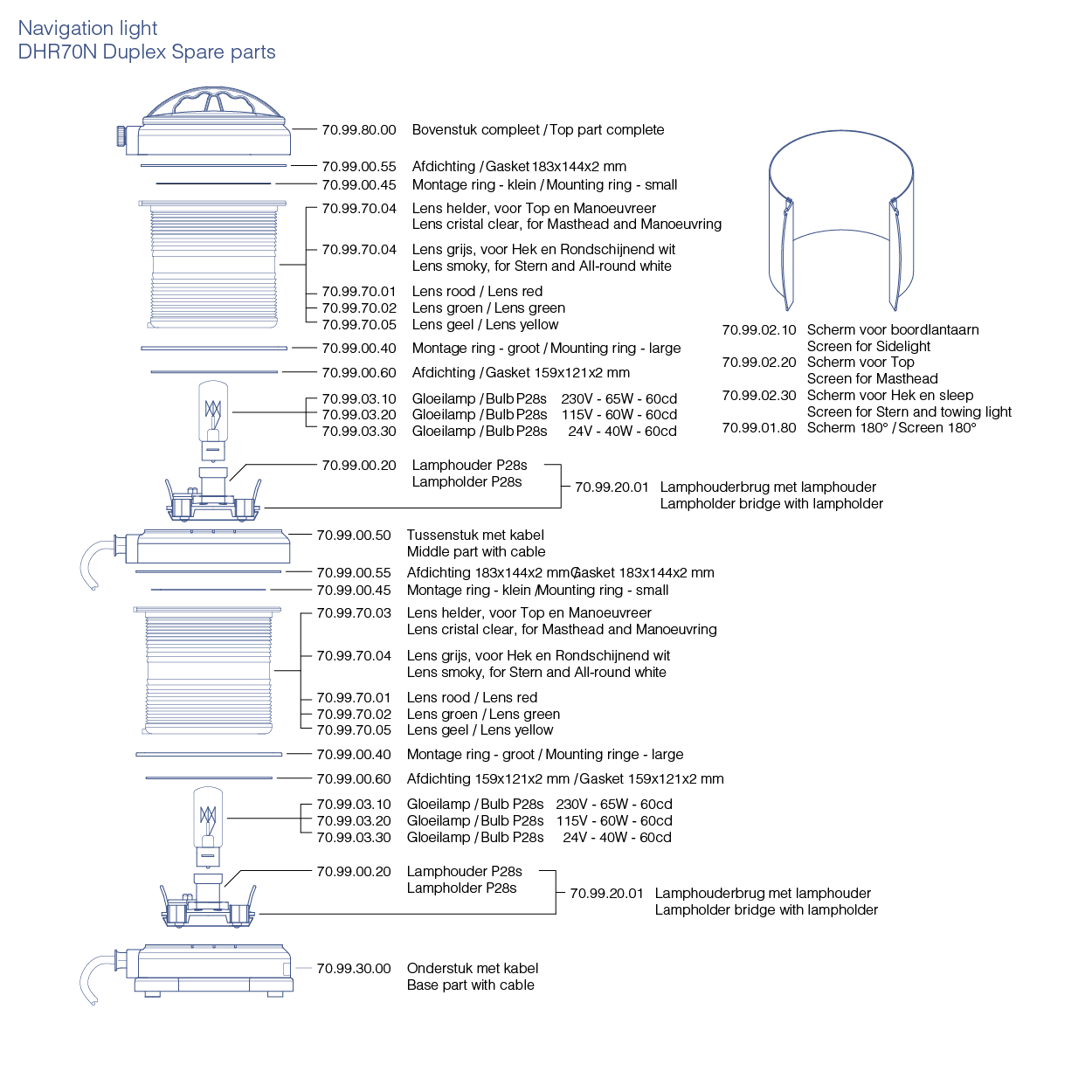Sector lights and 180° screened lights: 4.1kg